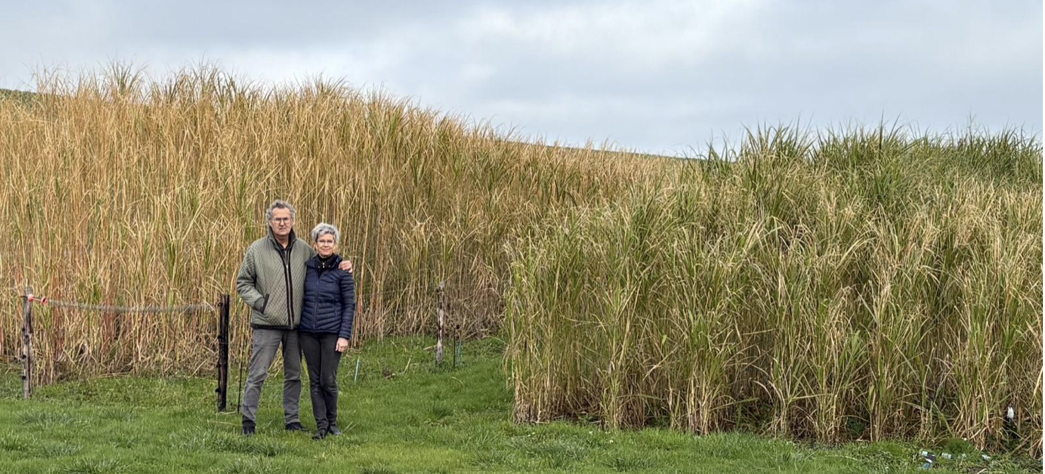 Een bezoek van Hein van “Dutch Plant Force” wakkerde zijn interesse verder aan. Samen met Thea, die geniet van het Mammoetgras dat “je iedere dag ziet groeien”, startte hij een proef op verzilte grond in Zeeland. Hun doel? Experimenteren en ontdekken wat Mammoetgras kan betekenen en daardoor hun carbon footprint verlagen.